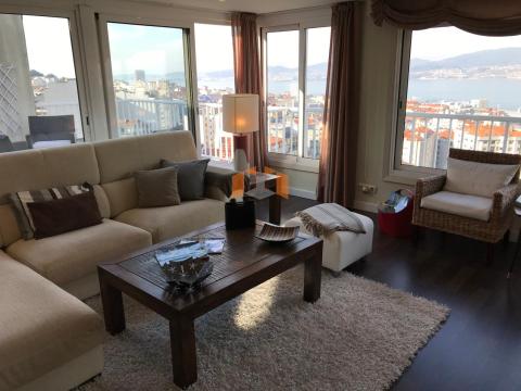 EL PISO ESTÁ COMPLETAMENTE AMUEBLADO, CONSTA DE UN GRÁN SALÓN COMPLETAMENTE ACRISTALADO Y CON UNAS VISTAS EXPECTACULARES DE LA RÍA DE VIGO.